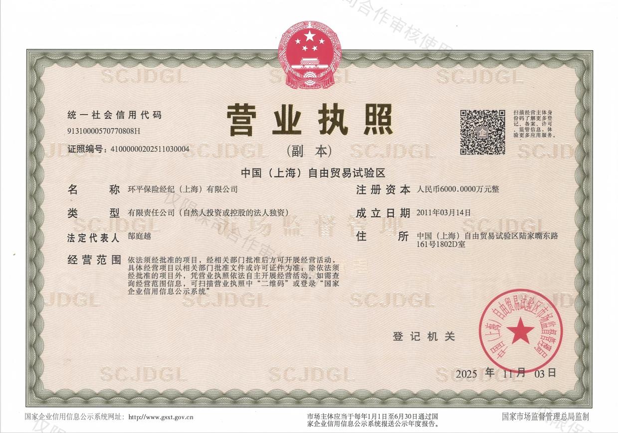 中文名称:环平保险经纪(上海)有限公司