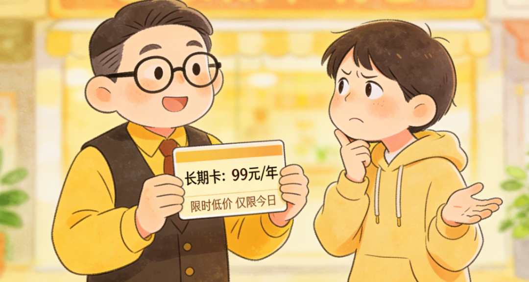 明明是新店,却极力推荐“三年卡”“五年卡”。正规商家知道,太长期的预付费存在风险。